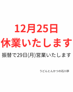 日頃より石川亭をご利用いただきまして誠にありがとうございます。