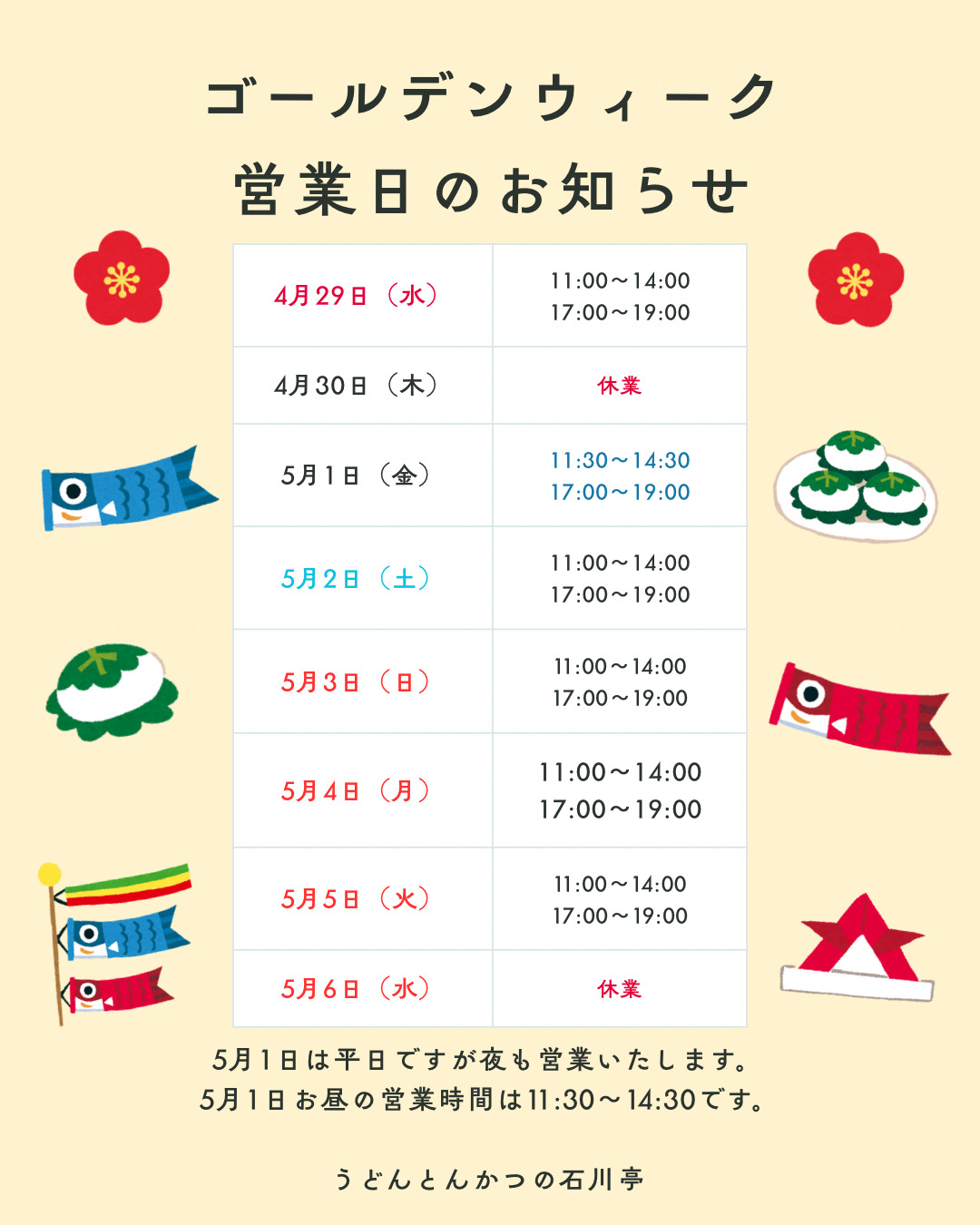 2026ゴールデンウィーク営業日