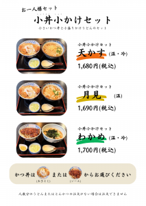 小丼小かけセットは小さいかつ丼と小盛りかけうどんのセットです。